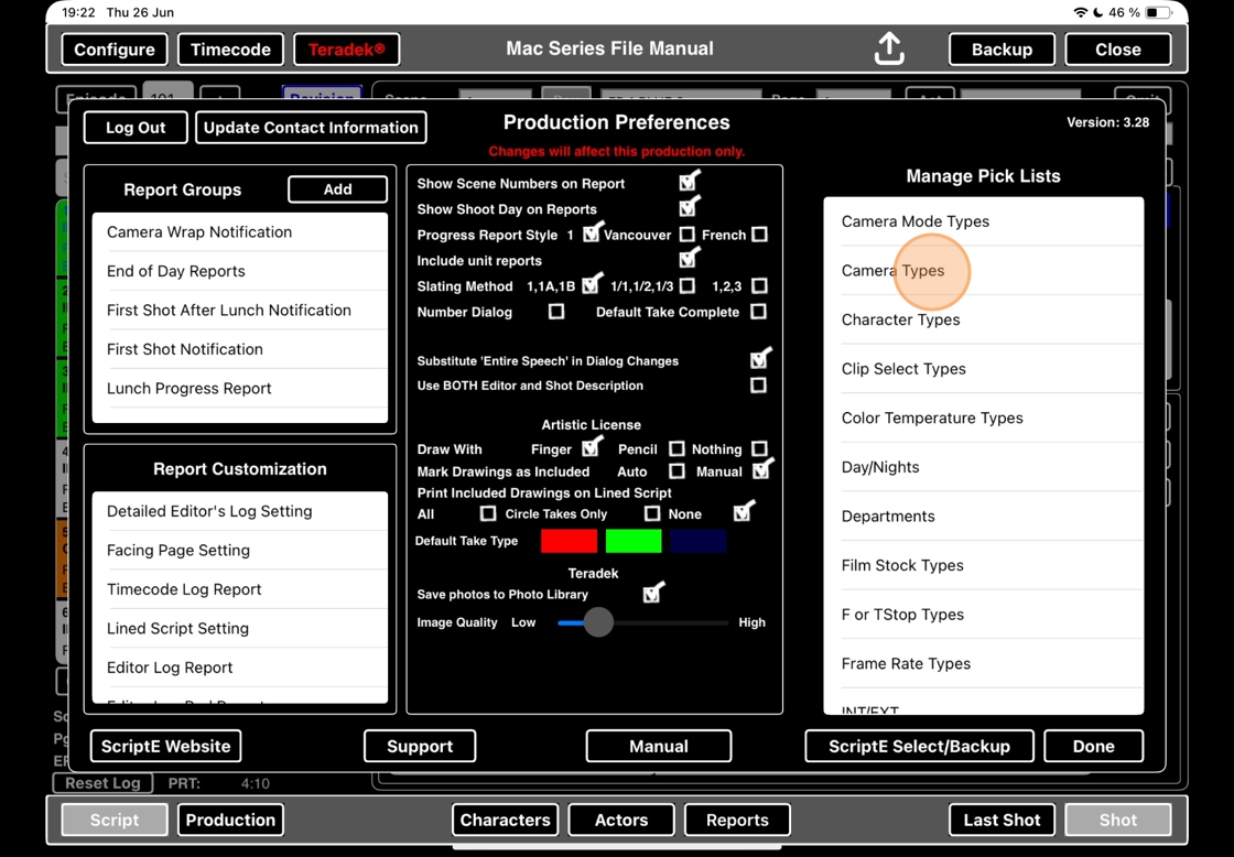 3. Select CAMERA TYPES in the Manage Pick Lists section