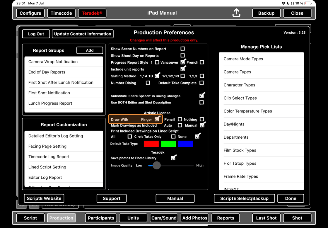 3. Tap the checkbox next to FINGER to select drawing with finger (or stylus).