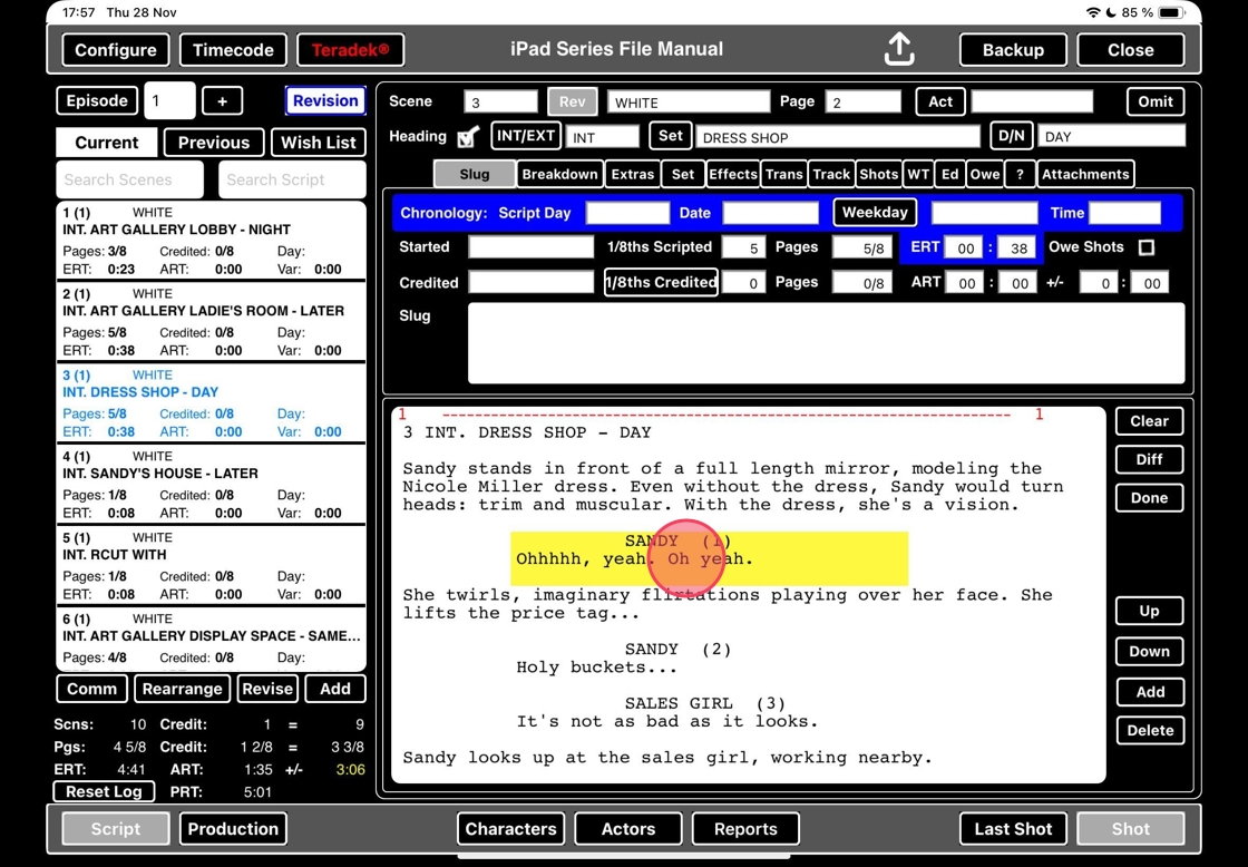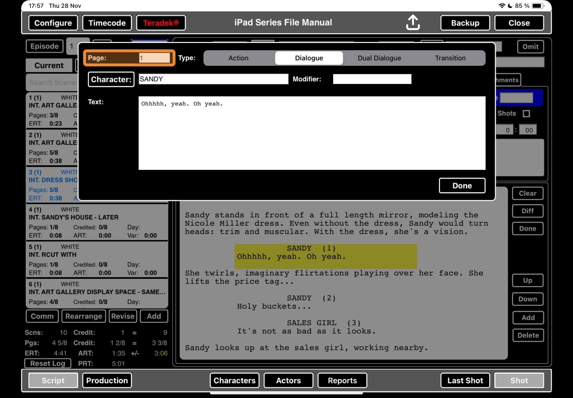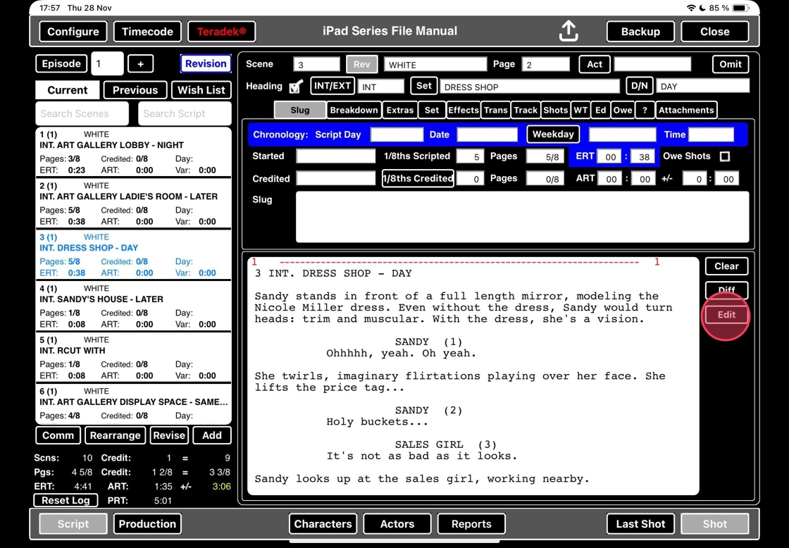 2. Look at the PAGE BOX to see which page the scene starts on.