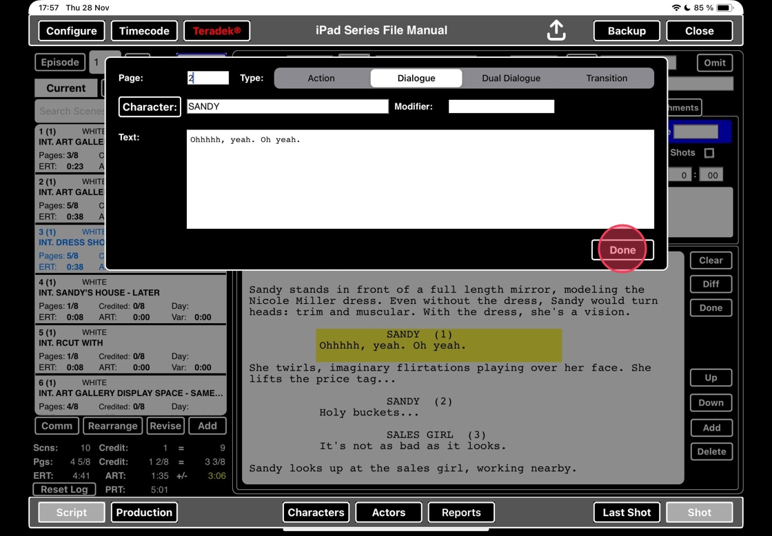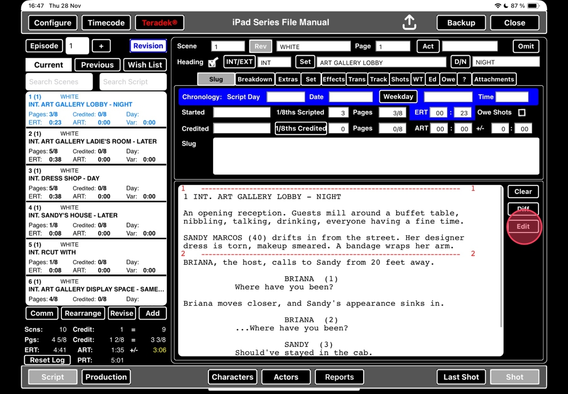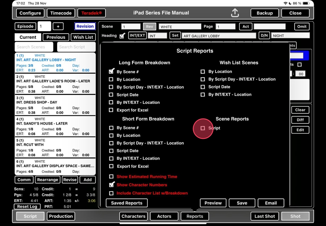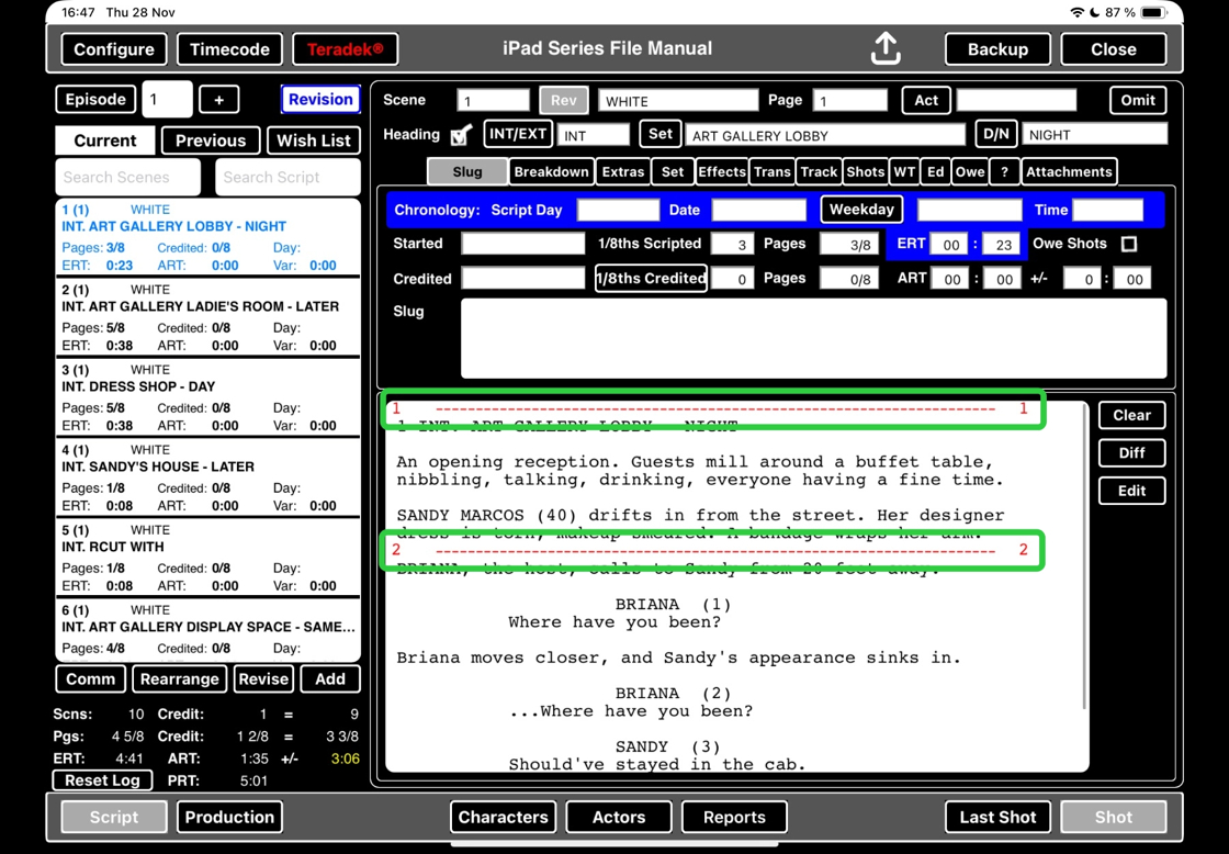 16. Select the scene you want to add a new page break to (this may be the one you already have open).