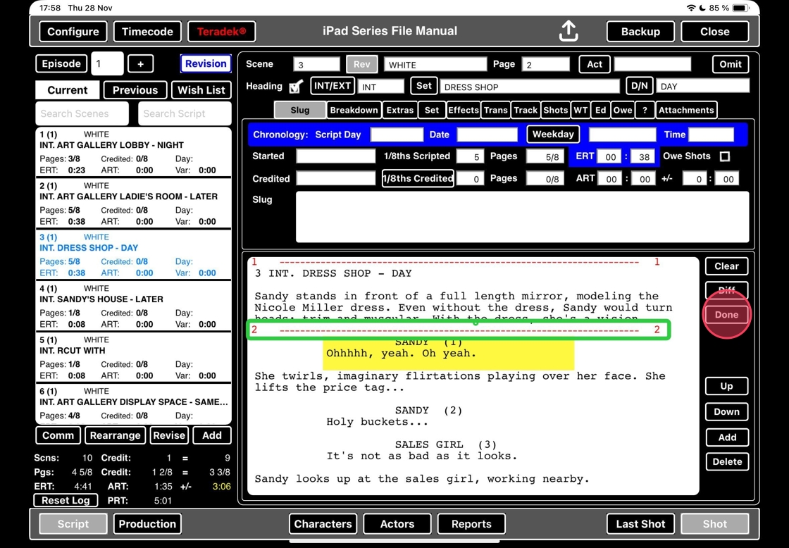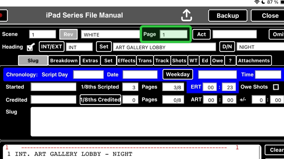 The number in the page box indicates which page the the scene header (INT/EXT. LOCATION - D/N) with be printed on.