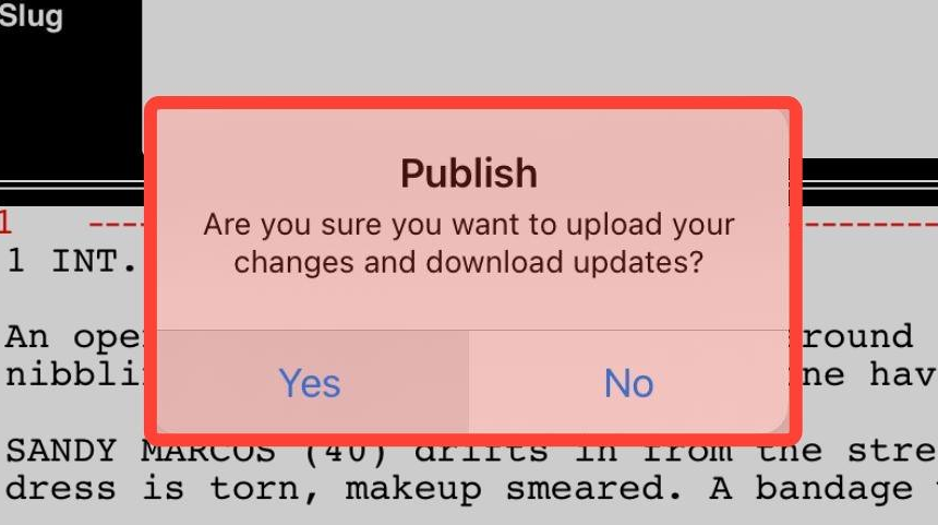 Publishing will upload changes and download updates - depending on the file size, this may take a couple of minutes. Do not do this unless you have time.