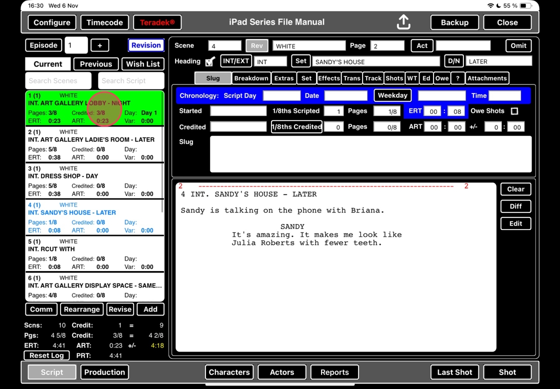ScriptE for iPad: Generate Facing & Lined Pages for a Single Scene