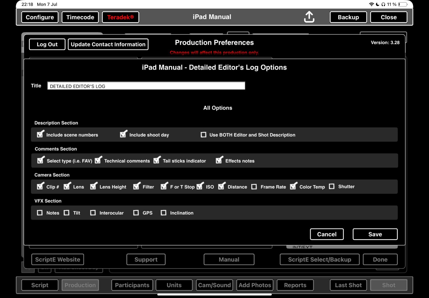 ScriptE for iPad: Show/Hide Clip Numbers on Reports