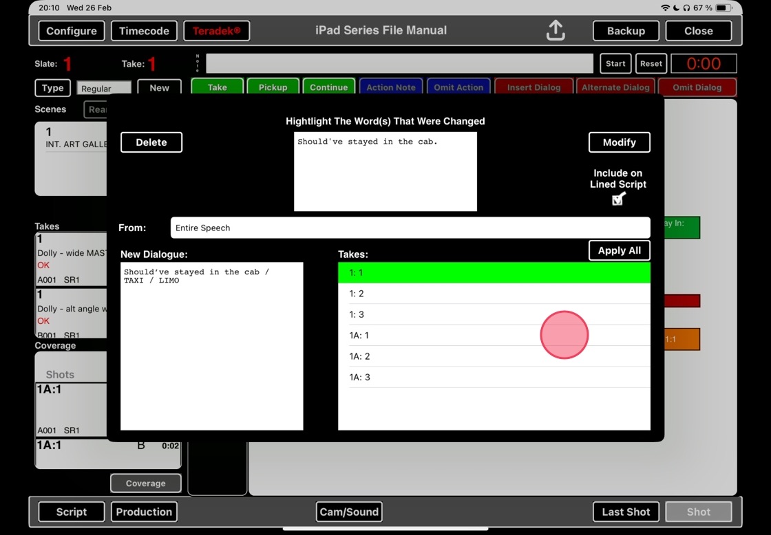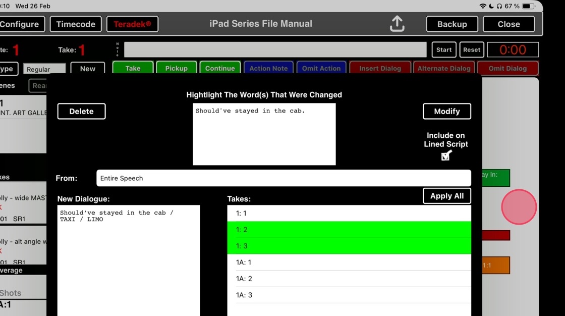 6. Select takes which the alterations apply to