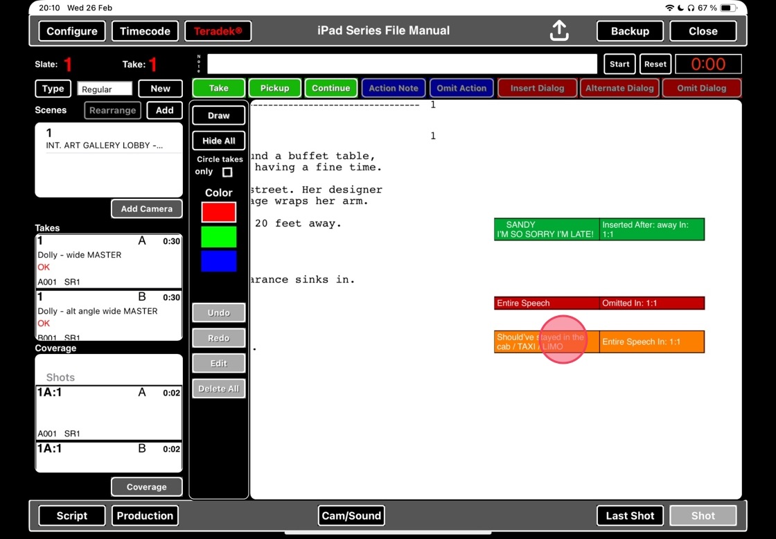 20. Tap on the takes that the margin note applies to.