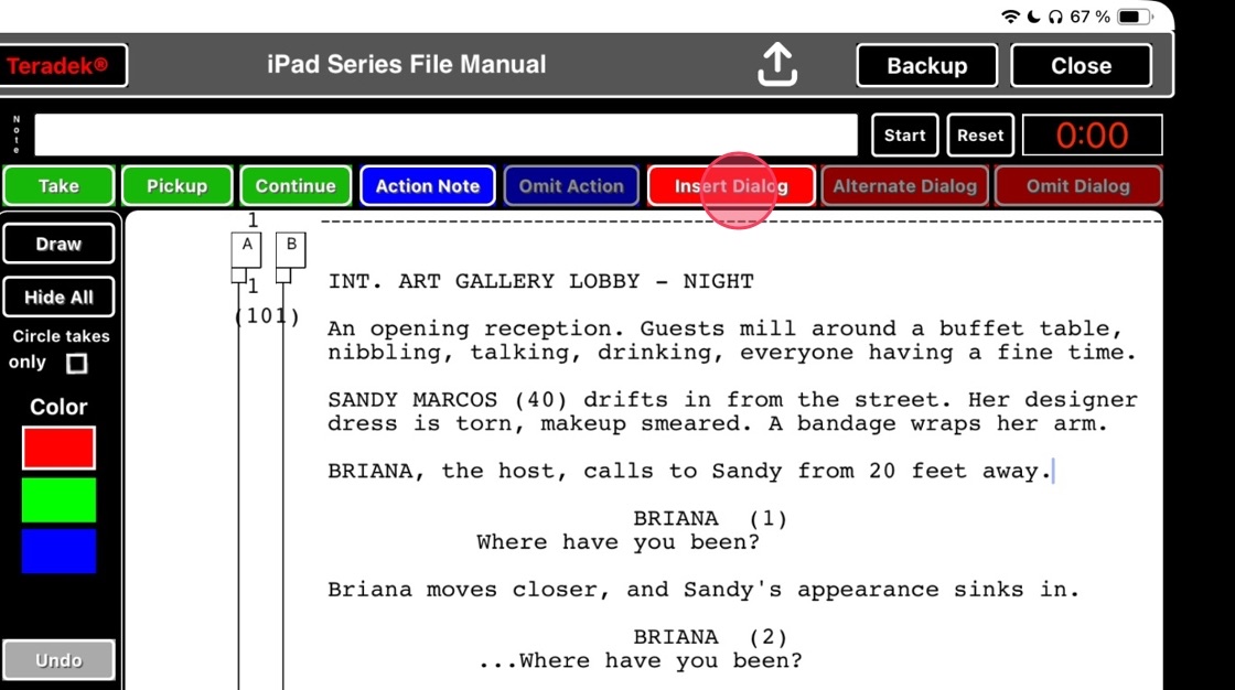6. Place your cursor on the script where you would like to insert the dialog. The INSERT DIALOG button will become clickable.