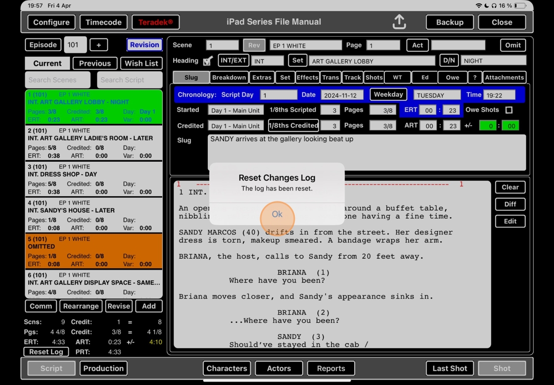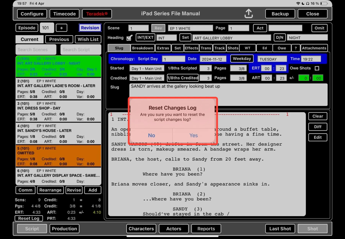 ScriptE for iPad: Fix Incorrect Daily Progress Report Math - Reset Script Changes Log