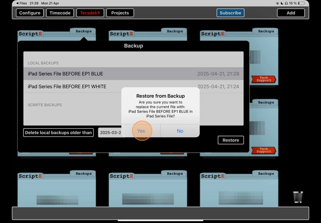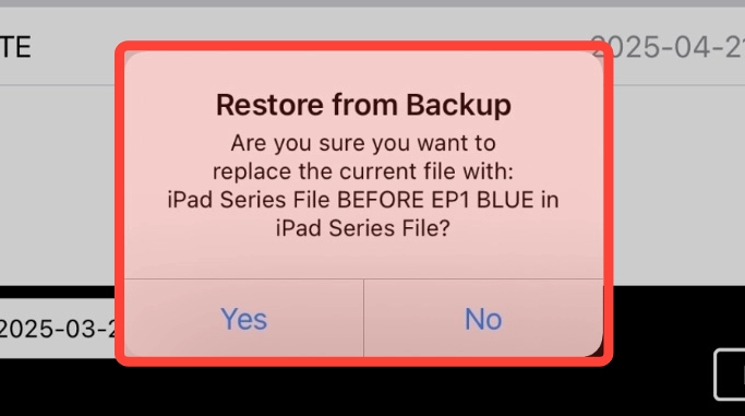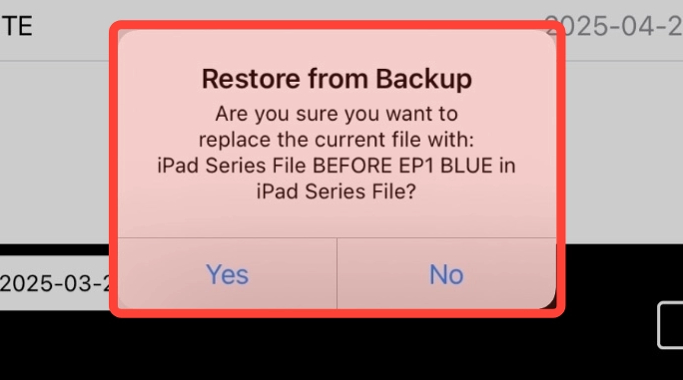 4. WARNING: Selecting YES here will DELETE ALL WORK YOU HAVE DONE IN THE FILE AFTER THE BACKUP WAS CREATED.