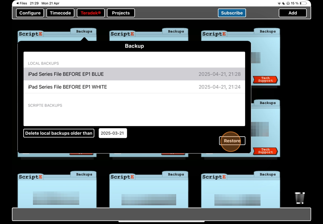 If you have logged shots or made other continuity notes, ensure that you have exported reports or taken screenshots of that work so that you can recreate it manually after restoring the file.