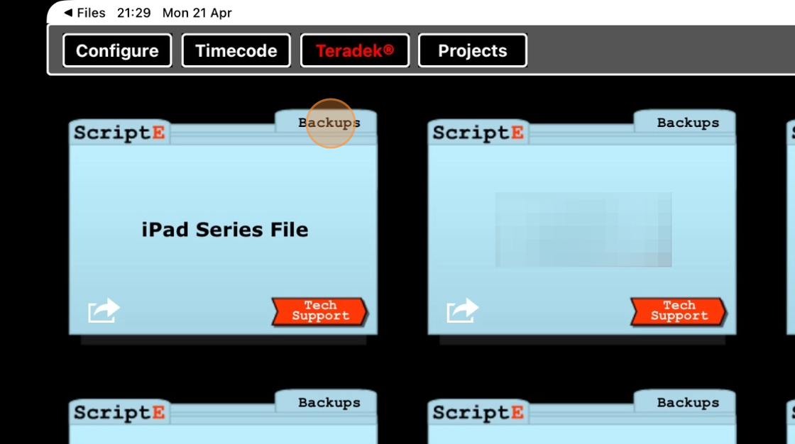 1. On the file you want to revert to a previous backup, click the BACKUPS TAB