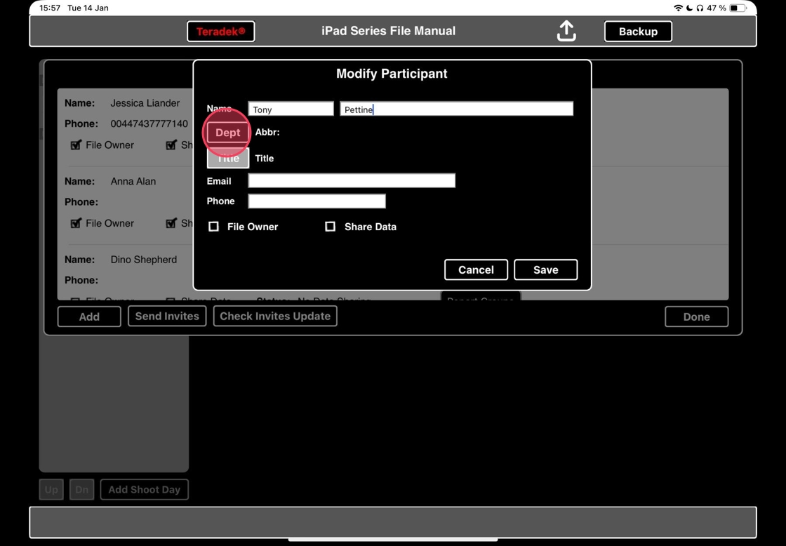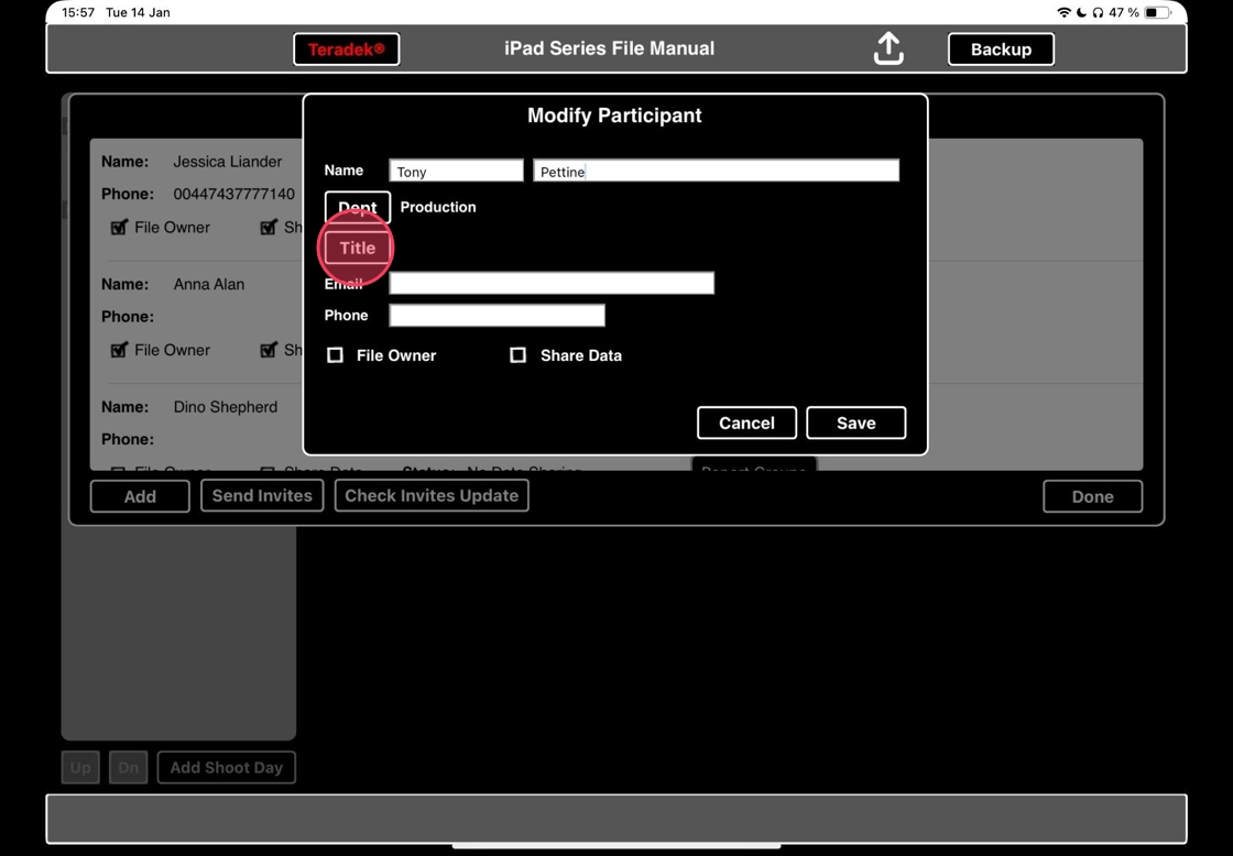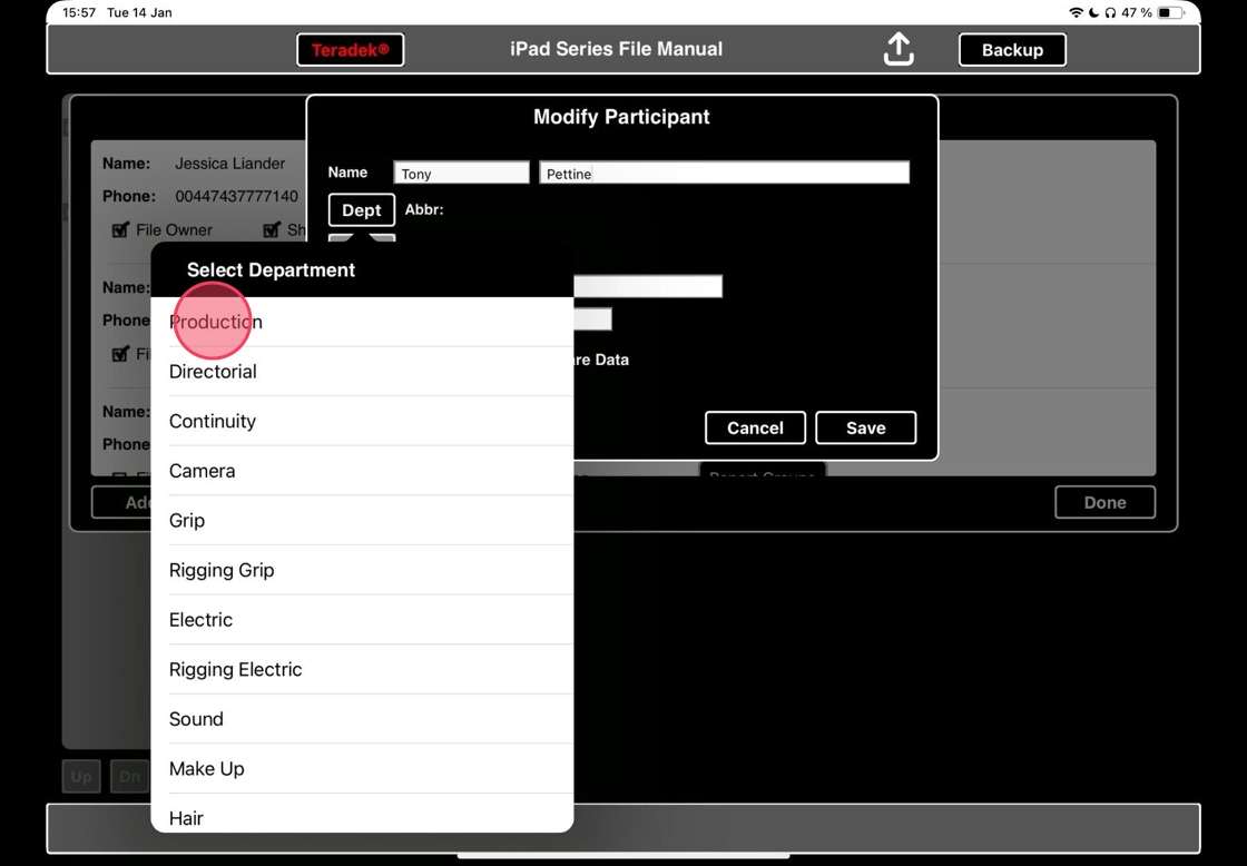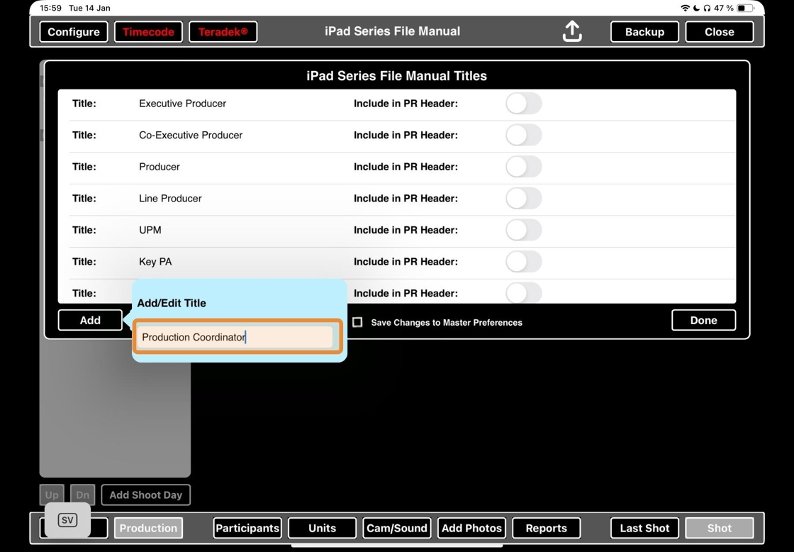 16. In the Departments Menu, locate the department you want to add the title to. Tap MANAGE TITLES to open the Titles Menu.