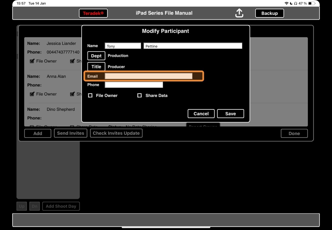 24. In the Production/Crew section, toggle recipients on or off to include or exclude them from the email that will be sent.