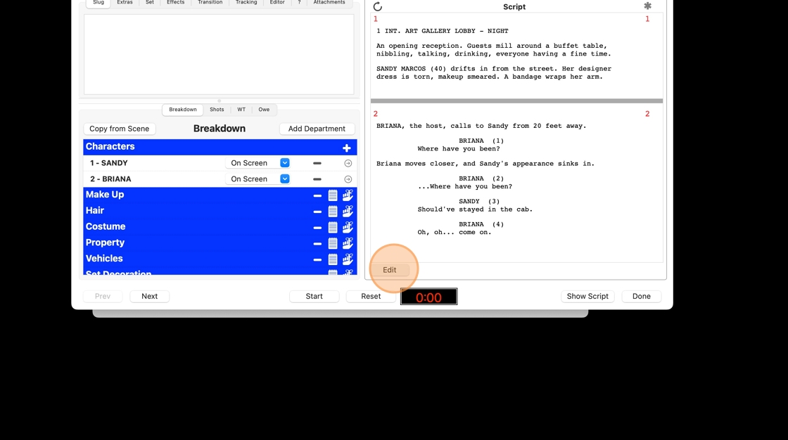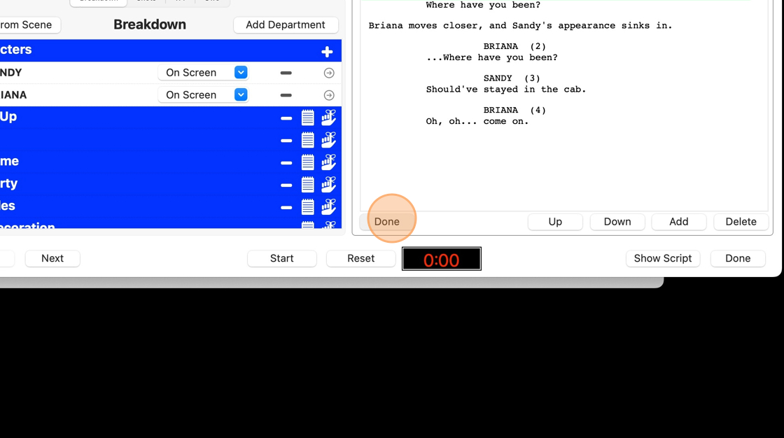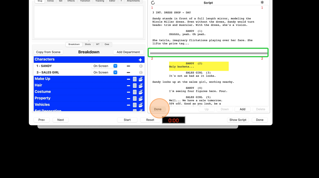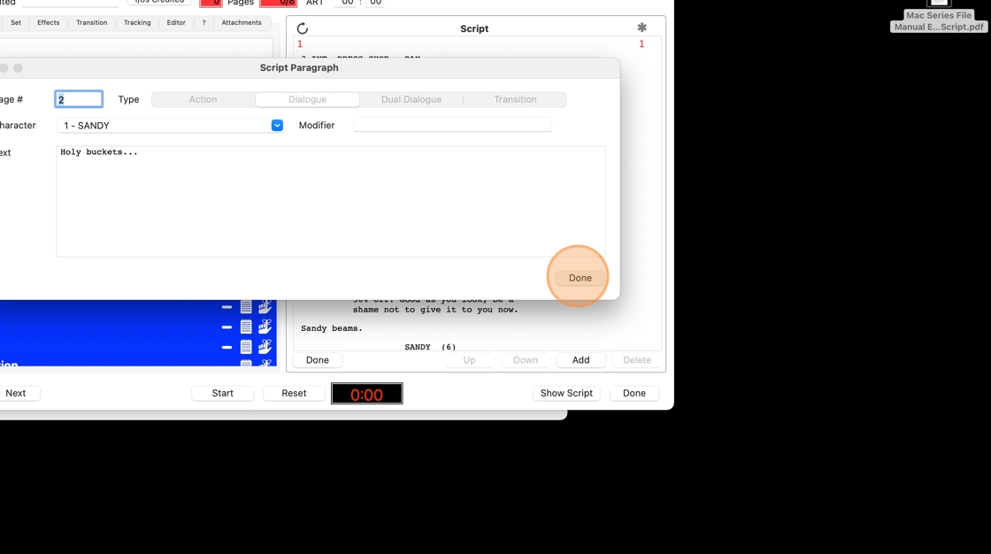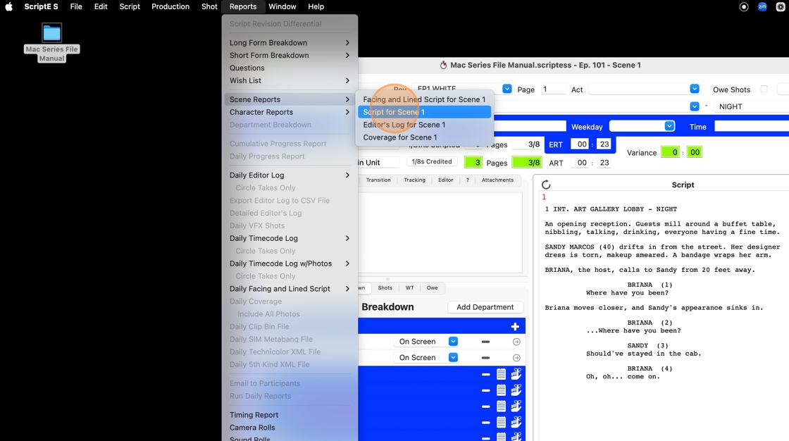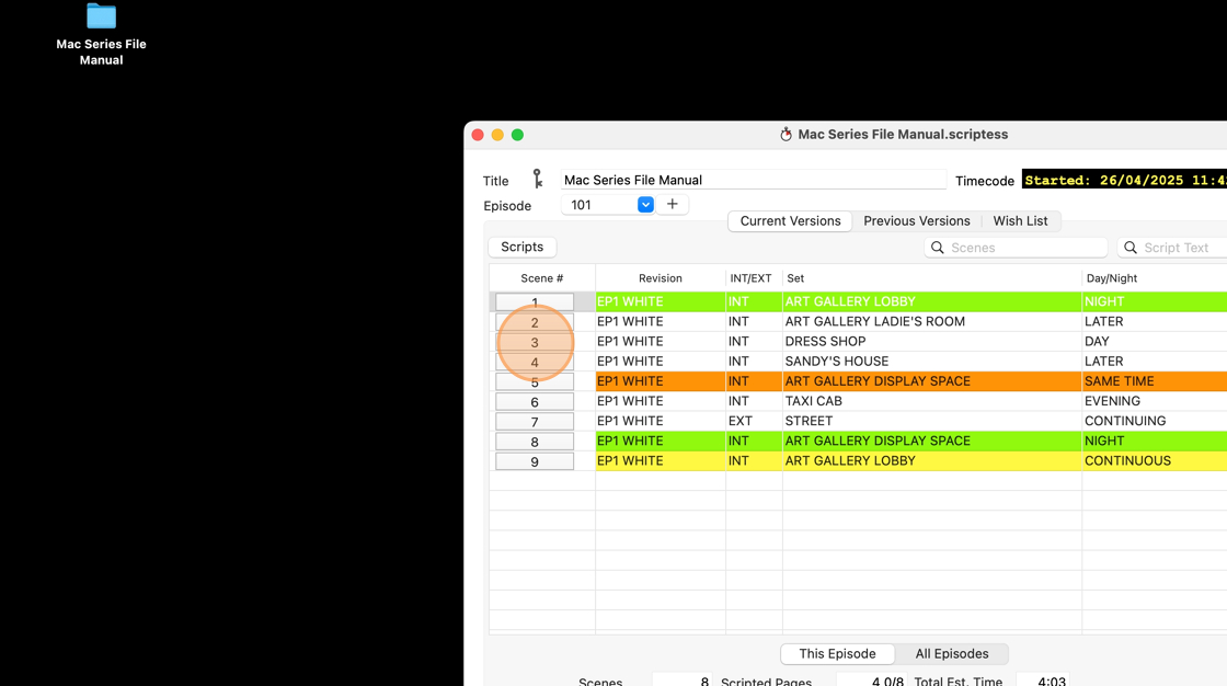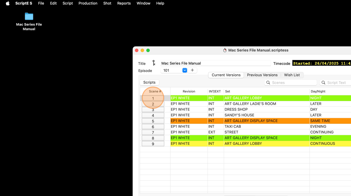 15. Select the scene you want to add a new page break to (this may be the one you already have open).