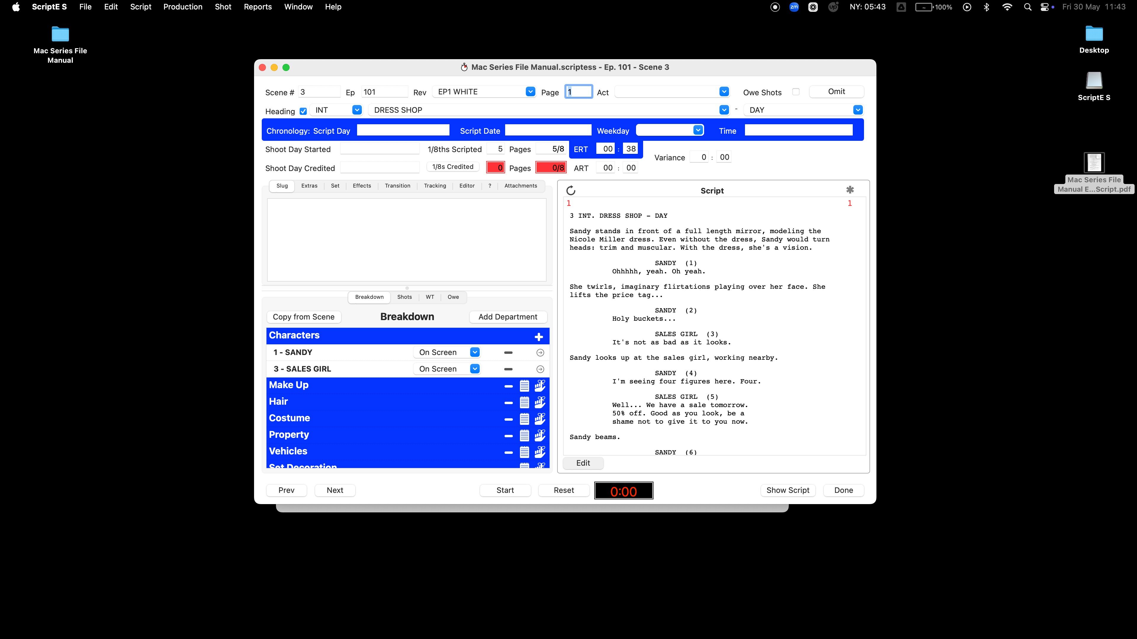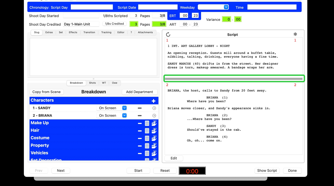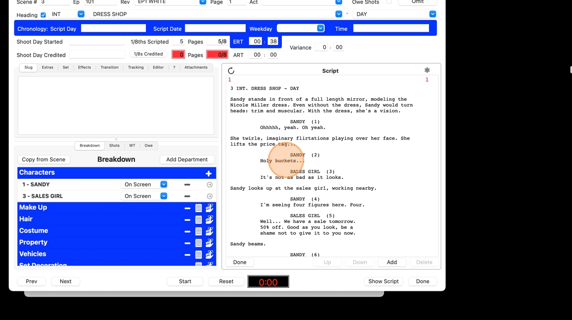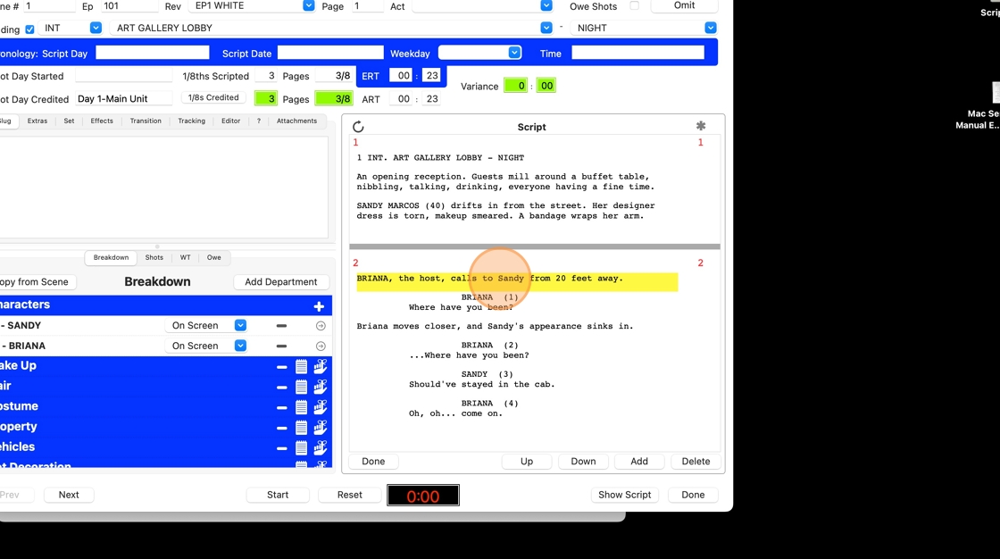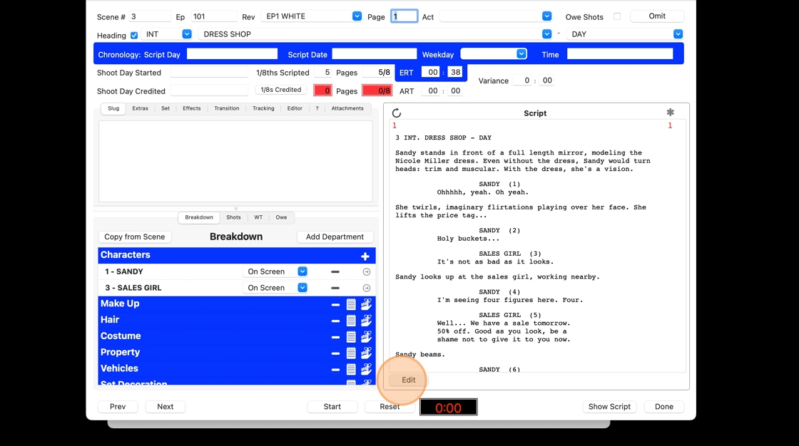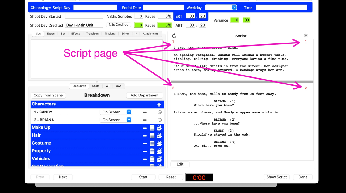 2. Look at the PAGE BOX to see which page the scene starts on.