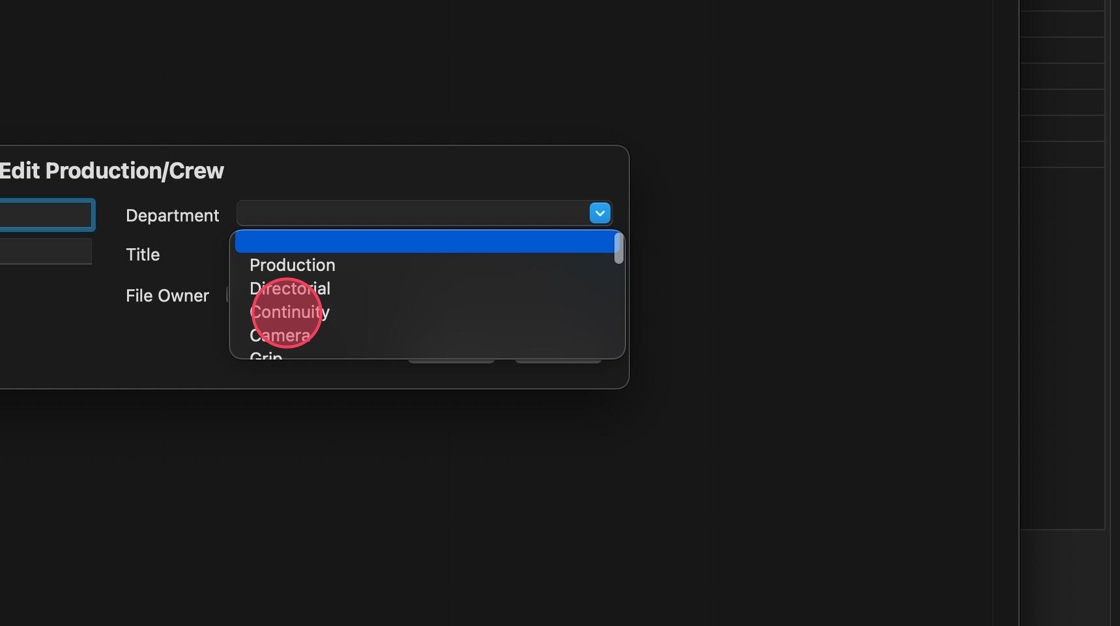 Click the PLUS SIGN on the CONTINUITY DEPARTMENT