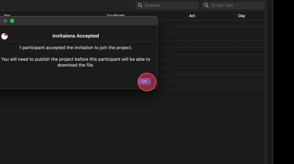 36. When you see this message, let the Key Script Supervisor know that you have accepted the invite.