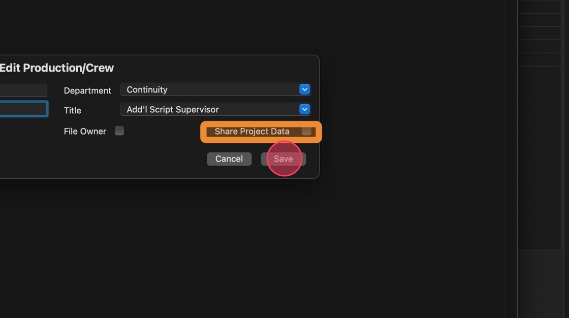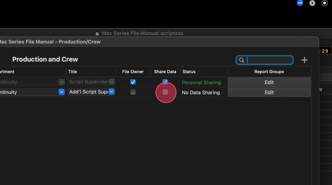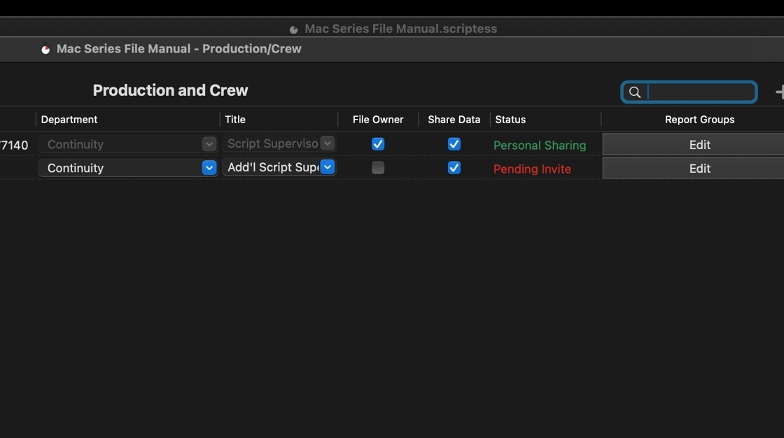 File sharing is not a way to distribute reports. Only invite other script supervisors and assistant script supervisors to file share.