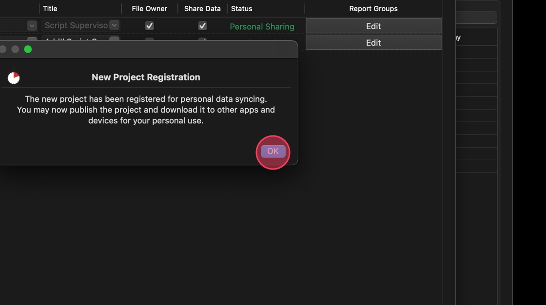 8. Tick SHARE PROJECT DATA (a checkmark appears) and CLICK SAVE (if you forget this step, see step 9)