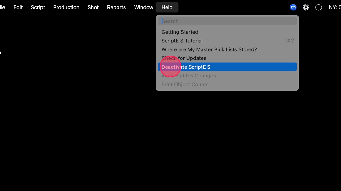 1. Click on ScriptE to open the ScriptE menu in the top bar.
