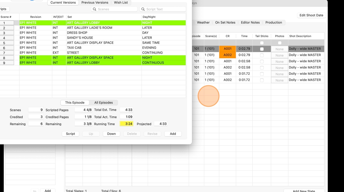 10. If a shot has "gone missing" from a shoot day by being dislodged for any reason. The shot will still be in Script, you just need to but it back to the correct day.