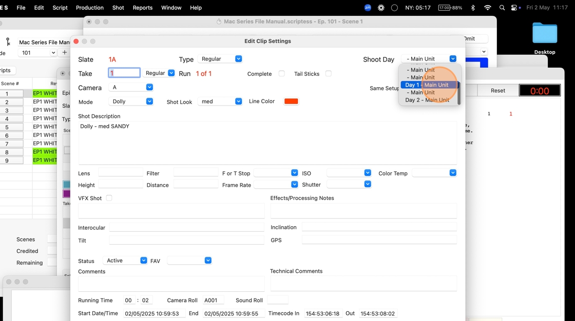 8. In the shoot day window, select the shoot day you moved the slate to.