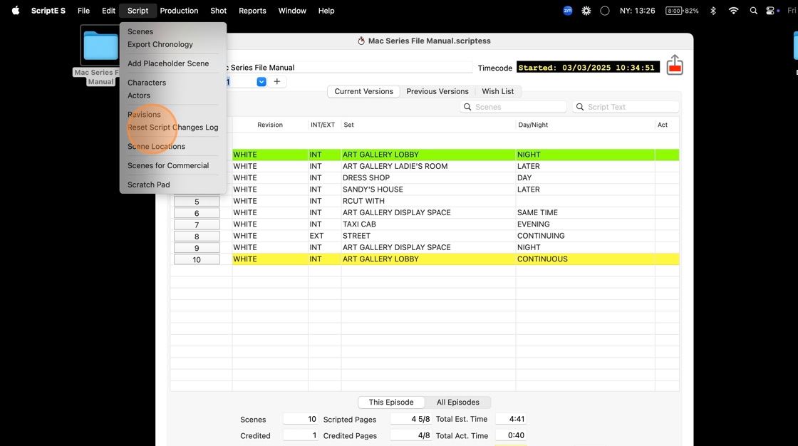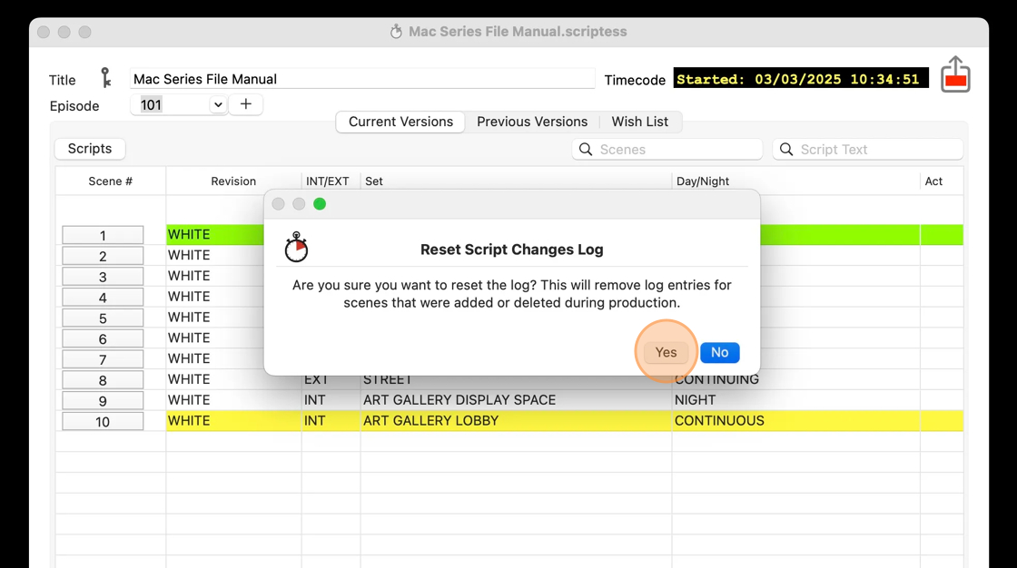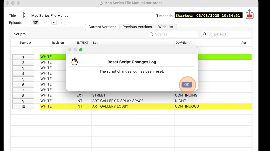 Sometimes when you get a script revision, the math for number of scenes, pages and setups in the Daily Progress Report can go off. To fix this, you need to reset the script changes log.