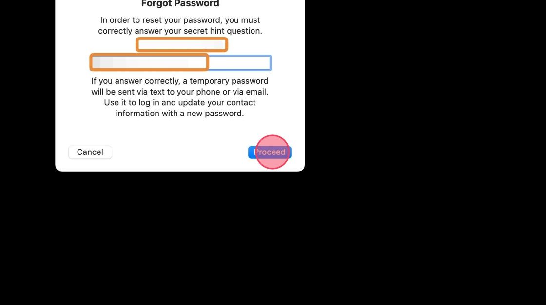 3. Type in the answer to your secret hint question. Note that the secret hint might not be an actual question.