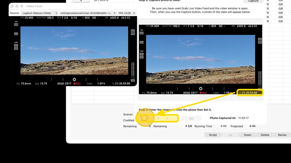If you do not use monitor connection, use the computer's camera to take a photo of the TIMECODE.