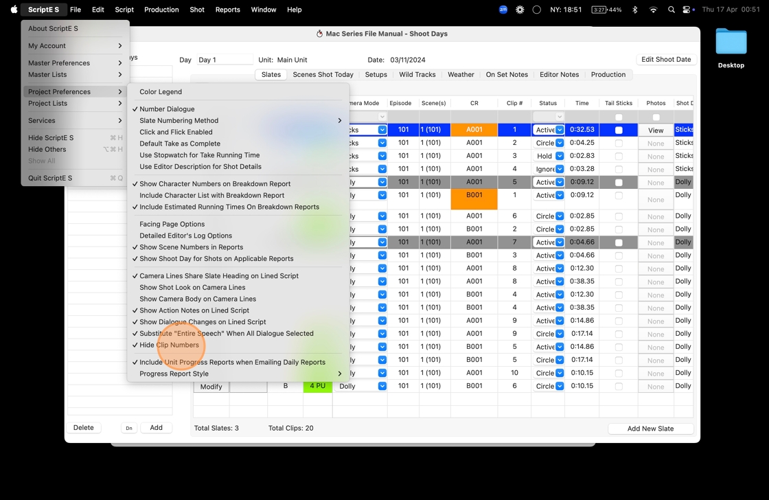 2. Under PROJECT PREFERENCES: Make sure that HIDE CLIP NUMBERS is UNTICKED